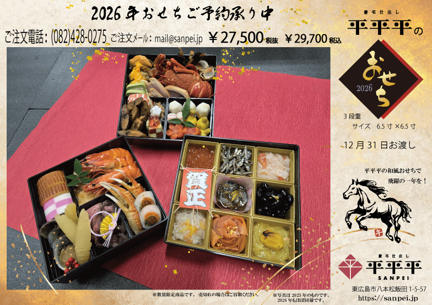 平平平が丹精込めて作ったおせちで、2026年のスタートをお迎えください。